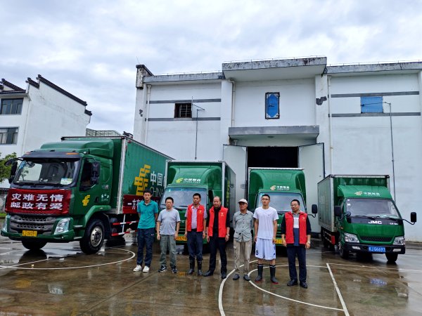 6月22日,歙县邮政在得知县政府急需车辆配送救灾物资时,立即抽调4辆邮政箱式货车,主动帮助政府搬运救灾物资,第一时间将1400件矿泉水、2250箱方便面等物资安全送达桂林镇、溪头镇等13个受灾乡镇。