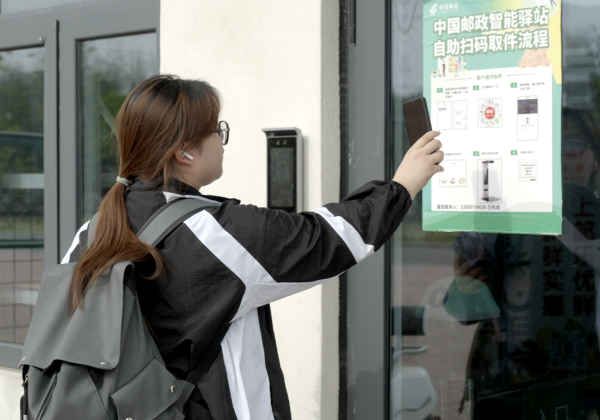 安徽邮政坚持以科技赋能高校驿站建设,升级智能设备,打造阜阳理工学院邮政24小时自助驿站,给在校师生带来全新的数字化便捷取件体验。自助取件区依托“上海邮乐”“中邮E通”“大华技术”3家公司提供技术支撑,实现门禁系统、自助取件、智能监控等全流程无人管理,提供全天候自助取件服务。取件人在邮乐网公众号注册帐号后绑定手机号码,通过扫码、输入取件短信验证码进入驿站,查找快递架标号和邮件编号,经高拍仪扫描出库实现自助取件,取件后门禁再次解锁,并在客户离开后自动上锁。驿站安装高清智能监控设备,通过云监控360度全影自动跟踪拍摄,自动比对取件人的身份,有效保证邮件安全。
