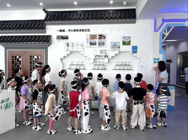 “小朋友们,我们先看一看牛奶是如何加工而变成我们爱喝的牛奶的。”讲解员边走边给身后列队的小朋友们科普牛奶加工过程,工作人员还将小朋友们带进生产加工区域参观。