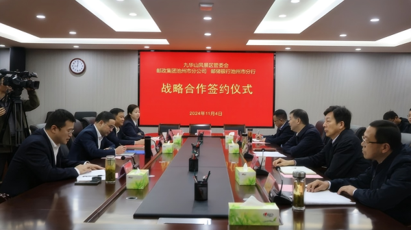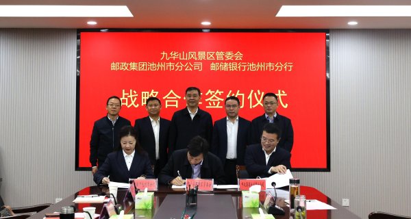 11月4日,池州市邮政分公司、邮储银行池州市分行与九华山风景区管委会,签署战略合作协议。