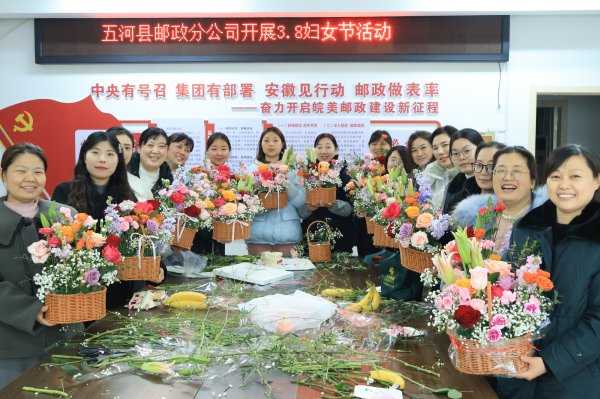 太和县邮政分公司组织女职工开展“迎三八 漾芳华”春日香气插花活动。一朵朵鲜花在她们手中绽放新的生机,一个个精美的花篮逐渐成形。