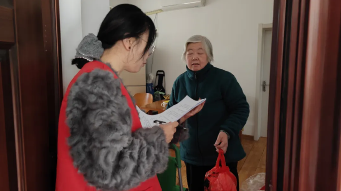 身穿红马甲的邮政志愿者逐户向居民发放文明创建宣传资料,倡导“说文明话、办文明事、做文明人”,号召大家主动参与志愿服务,维护社区环境。通过填写纸质问卷,认真记录居民群众对老旧小区环境整治、公共设施完善等方面的意见建议。对老年居民等特殊群体,志愿者们逐题宣读、现场代填,活动现场十分暖心。