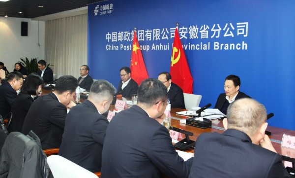 安徽省邮政公司领导刘支宇、刘文骏、张俊卿、满峰在主会场出席会议。会议采取“现场会+电视电话会”的形式召开。会议传达了李中副省长的批示。省邮政公司党委书记、总经理刘支宇作了题为《强化遵循 高效执行 奋力推动安徽邮政高质量发展持续走在前列》的工作报告。